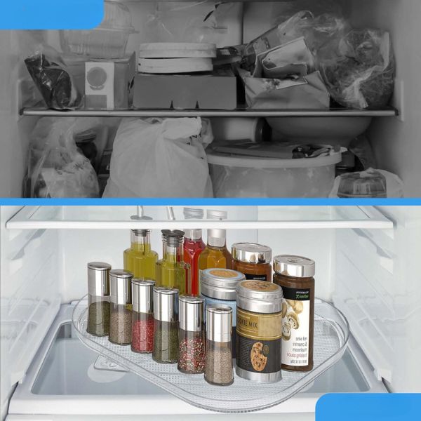 Už vás nebaví přeplněná lednice? SPINTRAY udrží vaši ledničku uspořádanou a bez nepořádku, takže v ní najdete, co potřebujete, aniž byste se museli přehrabovat v hromadách potravin. Díky plynulému otáčení o 360° je vše na dosah, což vám ušetří čas i frustraci.